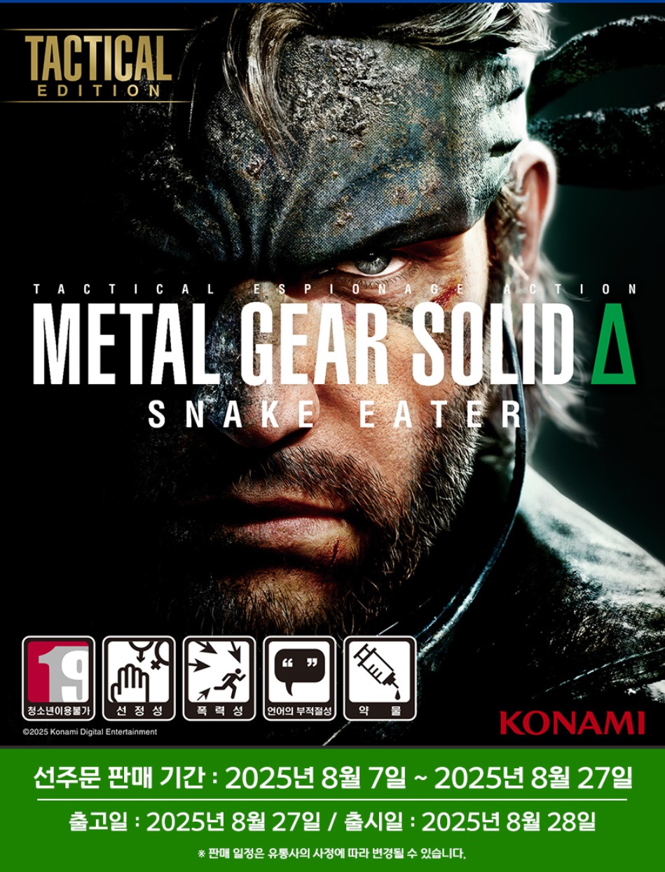 메기솔델타 스네이크이터 PS5 한국어판은 25.08.07(목) 오후 3시부터 시작 되며.